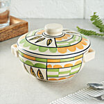 bb home Earth Serving/Mixing Bowl - Handcrafted Ceramic, Chic Abstract Green Orange, 500 ml