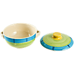 No Question askedbb home Earth Serving/Mixing Bowl- With Lid, Hand Painted Ceramic, Tricolour