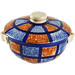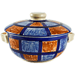 HOME>KITCHEN, GARDEN & PETS>CROCKERY & CUTLERY>PLATES & BOWLS>BB HOME EARTH Serving/Mixing Bowl With Lid, Hand- Painted Ceramic, Checkered Yellow & Blue