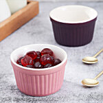 bb home Earth Ceramic Jelly/Pudding Bowl - Hand Crafted Ceramic, Purple Pink, 200 ml (Set of 2)