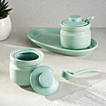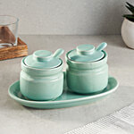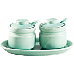bb home Earth Ceramic Jar For Pickle, Sugar, Spices, Hand Crafted - Turquoise Green, 300 ml (Set of 2)