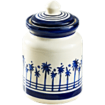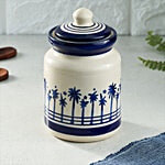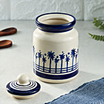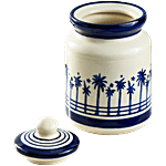 No Question askedbb home Earth Storage Mini Jar - For Pickle, Sugar, Spices, Chutney, Handcrafted Ceramic, Blue White