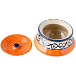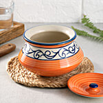 bb home Earth Storage Jar/Handi With Lid - For Pickle/ Spices, Hand Painted Ceramic, Classic Floral Red Yellow, 700 ml