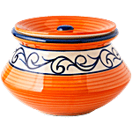 No Question askedbb home Earth Storage Jar/Handi With Lid - For Pickle/ Spices, Hand Painted Ceramic, Classic Floral Red Yellow