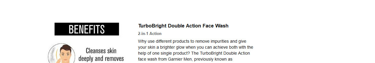 Dust, pollution, and dirt can wreak havoc on your skin, making it look dull and dry. Get rid of impurities from your skin with the Garnier Turbo Bright Anti-Pollution Double Action Facewash. The dual-textured face wash is powered by charcoal that pulls out traces of dust, pollution, and impurities from deep within your pores. The icy clay complex in the brightening facewash gives you even skin that stays fresh all day long, making it one of the best faces washes for men. The unique 2 in 1 formula of the Garnier Men’s face wash is perfect for those who lead an active lifestyle and are constantly exposed to dust and pollution.