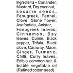 Coriander, Fennel, Clove, Cinnamon, Bay Leaf, Cumin, Black Pepper, Ginger, Common Salt, Mango Powder, Black Salt, Mint Leaves, Asafoetida