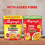 Bagrry's Corn Flakes Plus Original Healthier - Added Fibre, 1 kg Pouch