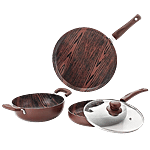 Nirlon Woody 4-Piece Aluminium Non-Stick Non Induction Cookware Set with Glass Lid, 4 pcs