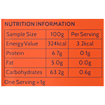 Nutrition_per: 100g Serving_Size: 1g Energy Value: 324kcal Protein: 6.7g Fat: 5.0g Carbohydrates: 63.2g
