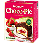 Orion Real Strawberry Choco Pie is a chocolate pie cookie cake. It is made with premium quality cocoa from Ghana. It is cream-filled biscuits dipped in yummy chocolate. These chocolate swirl cookies are delicious and luxurious. It is a delightful combination biscuit that is loved by all. Every bite makes a great delicious treat for your taste buds. It is a perfect snack on its own or can be enjoyed with your evening tea.
