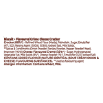 Cracker (68%) - Refined Wheat Flour (Maida), Palmolein, Sugar, Emulsifier (471,322), Raising Agent (500(ii), 503(ii)), Iodised Salt, Milk Solids, Spices & Condiments (Onion Powder, Parsley Powder, Pepper Powder) Yeast, Improver (1101(i)) Cheese Flavoured Creme (32%) - Sugar, Hydrogenated Vegetable Fat, Milk Solids (8%), Cheese Powder (1%), Emulsifier (322), Iodised Salt. Contains Added Flavour (Nature Identical (Sour Cream Onion & Cheese) Flavouring Substances). Used As Flavouring Agent.