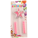 No Question askedB Vishal Star Number Candle - 3, Smoke Free Wax, Cake Topper For Birthday, Anniversary, Pink