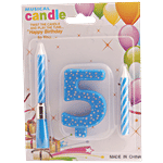 B Vishal Musical Candle With Twisted Number - 5, Smoke Free Wax, For Birthday, Anniversary, Blue, 1 pc