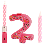 B Vishal Musical Candle With Twisted Number - 2, Smoke Free Wax, For Birthday, Anniversary, Pink, 1 pc