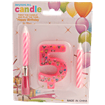 No Question askedB Vishal Musical Candle With Twisted Number - 5, Smoke Free Wax, For Birthday, Anniversary, Pink