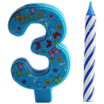 B Vishal Plastic Candle With Twisted Number - 3, Smoke Free Wax, For Birthday, Anniversary, Blue