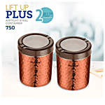 Trueware Stainless Steel Lacquer Finish Hammer Lift Up Plus Airtight Container - Durable, Food Safe, 750 ml (Set of 2)