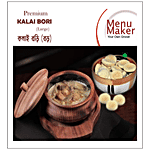 Kalai Dal Bori or Urad dal Bori or Biuli Dal Bori is sundried lentil drops made out of Kalai Biuli Urad dal paste through handmade skilled operation and sun-dried thereafter. It is not only a Bengali speciality but it also adds to every dish the much-needed texture and taste. The Kalaidal is first made into a fine paste and then sun-dried in tiny shapes. Once dried, the Kalai Bori can be had simply by frying the Bori as a crunchy side dish or by putting it in various preparations like Shukto, Shak, Ghonto, Vegetable curry, Fish curry or just Bori potato curry. Menu Maker Kalai Bori is 100% natural, made with premium quality ingredients without adding any artificial colour or flavour.