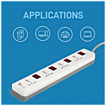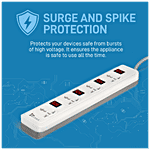 Syska EBS-0405 Quadra Pro - 4 Socket Extension Board, Long Wire, Grey-White, 1 pc