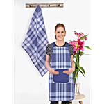 JBG Home Store Kitchen Combo Set - Apron With Front Pocket & Kitchen Napkin, 51 x 51 cm, Cotton, Check Pattern, Blue, 1 pc