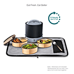 VAYA Stainless Steel Lunch/Tiffin Box - 3 Containers, With Bag Mat, Black, 1 pc