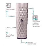 VAYA Insulated Stainless Steel Flask - With Sipper & Gulper Lids, Purple, 600 ml