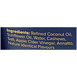 Refined Coconut Oil, Sunflower Oil, Water, Cashews, Salt, Apple Cider Vinegar, Annatto, Nature Identical Flavours.