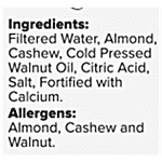 Filtered Water, Almond, Cashew, Cold Pressed Walnut Oil, Citric Acid, Salt, Fortified With Calcium.