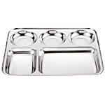 Neelam Stainless Steel Dlx Compartment Plate is made with high-quality stainless steel. It has five sections divided parts, you can separate dishes while serving everything on one plate. It is for multipurpose use for in-home, offices and restaurants. It is a basic plate which is required everywhere. It is very economical in a range is made of 100% food-grade stainless steel. It is easy and fun even for the picky eaters. This stainless steel plate with compartments can also be used in the mess, halls, parties, pantry, canteen, schools, colleges, hotels, restaurants and other services. This divided plate for kids has separate compartments to prevent food from sliding and mixing.