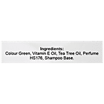 Colour Green, Vitamin E Oil, Tea Tree Oil, Perfume, Shampoo Base.