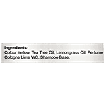 Colour Green, Vitamin E Oil, Tea Tree Oil, Perfume, Shampoo Base.