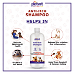 Petvit Anti Itch Shampoo is an antimicrobial, antifungal moisturizing shampoo. Natural active ingredients help soothe the coat and skin, reduce skin irritation and inflammation while repelling parasites and other insects from your pet’s. It nourishes and hydrates their coat as well. Our pet care Anti Itch Shampoo is designed and formulated with the help of veterans for an affordable, effective, and safe solution for your pet.