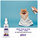 Petvit Anti Tick & Flea Spray - 6 Essential Oils, Vegan, pH Balanced, For Dogs, Cats, 100 ml