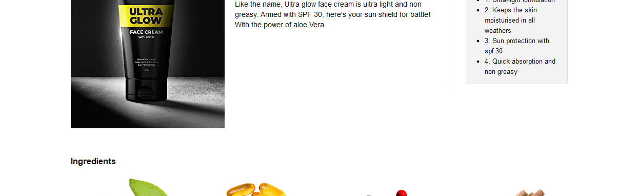 Total Nourishment with Beardo Ultraglow Face Cream: Beardo Ultraglow Face Cream is an all-in-one Face Cream that lets you make show-stopping appearances wherever you go. Our new and improved formulation is enriched with natural actives like Liquorice, Mulberry and Aloe vera extracts which are known to lighten skin by reducing hyperpigmentation and dark spots but also keep it soft and moisturised. Using this cream regularly wont just brighten your skin but also moisturise and protect it with SPF 30 so you can be photo-ready all the time. An Integral Part of Every Mans Skin Care Regime: Formulated especially for men's tough skin, Beardo Ultraglow All in 1 Men's Face Lotion moisturises the skin and lightens skin tone to give a natural glow