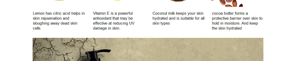 This Lotion is enriched with Lemon Peel extract which helps brighten your Skin and Coconut oil along with moisturizing ingredients like Cocoa Butter that seep into the deepest layers of the skin.