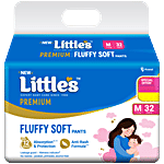 Little's Premium Baby Fluffy Soft Diaper Pants - M, 7-12 kg, 32 pcs