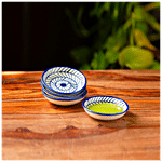 ExclusiveLane Ceramic Chutney Bowls - Indigo Chevron, Hand-painted, Microwave Safe, 25 ml (Set of 4)