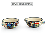 ExclusiveLane Ceramic Dinner Set - Plates, With Katoris & Serving Bowls, Hut Dining Hand-painted, 10 pcs
