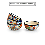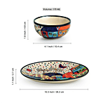 ExclusiveLane 'Hut Dining' Hand-painted Ceramic Dinner & Quarter Plates With Katori's is made with high-quality ceramic. Shiny and with life for decades, ceramic dinner plates are always the best option for daily usage. It is light in weight, easy to handle, easy to clean and wash. This classy ceramic round plate is ideal for gifting. It will bring a refreshing elegance to your dining table and will brighten up any special event. These bowls are lead-free and non-toxic ceramic which makes them safe for health. It is lightweight ceramic dinnerware set in an elegant design and easy to use. 100% premium quality food-grade ceramic which is safe for daily use.