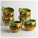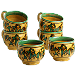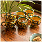 ExclusiveLane Ceramic Tea & Coffee Cups - 'Celebration In Sand' Warli Hand-Painted, 220 ml (Set of 6)