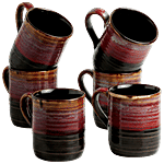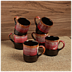 ExclusiveLane Ceramic Tea & Coffee Cups - Crimson Nightfalls, Studio Pottery Glazed, 180 ml (Set of 6)