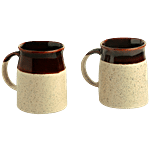 ExclusiveLane Ceramic Tea & Coffee Mugs - Cocoa Rims, Studio Pottery, Dark Brown & Cream, 320 ml (Set Of 2)