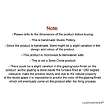 9. Note :- - Comes in a set of 2. - This is not a Bone China product. - There could be a slight variation in the glazing/colour/finish on the product, as the studio glazing is done inside the furnace fired at 1280 degree celsius to make the product sturdy and due to the natural property of the studio glaze it is impossible to predict the colour of the glazing/finish which will eventually come on the product after the firing process.