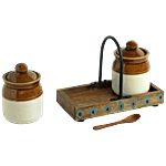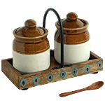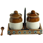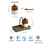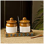 ExclusiveLane Chutney & Pickle Ceramic Jar With Tray - Old Fashioned Martaban, 225 ml (Set of 2)