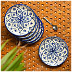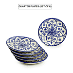 ExclusiveLane Ceramic Quarter Plates - Moroccan Floral, Studio Pottery, Hand Painted, 18 cm , Microwave Safe, 6 pcs