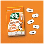 Tic Tac Orange is the Orange Explosion in fresh sunny orange flavour. More than 100 layers of Taste and Freshness. The gentle refreshment of Tic Tac, Share a little kindness with Tic Tac. Create your message and Win T&C apply.