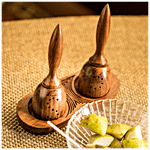 Spice up your meals at the dining table with these unique slanting salt and pepper shakers from ExclusiveLane. Shaped after maracas, these shakers will add a fresh appeal to your dining table setting. Handmade wooden set- The salt and pepper shakers, with engravings of alphabets ‘S’ and ‘P’ to identify each, rest slantingly on an engraved wooden Sheesham tray. Wood adds durability and strength to the set while also making it an exquisite piece of tableware.