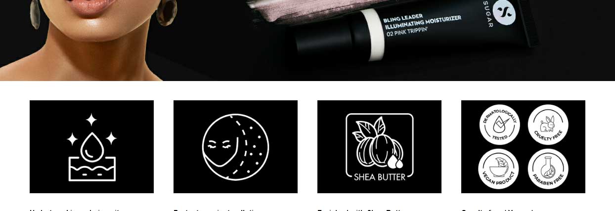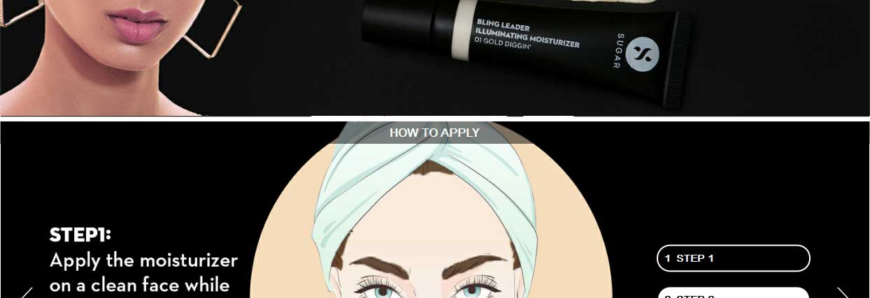 1. Apply SUGAR Bling Leader Illuminating Moisturizer directly to your skin for a radiant glow.