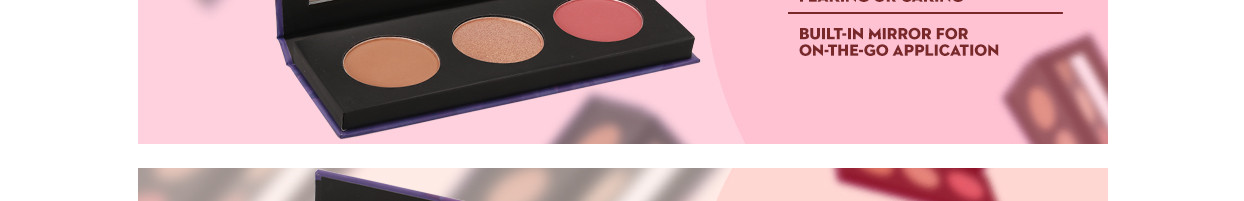 May Contain: Titanium Dioxide, Iron Oxides. Blush: Talc, Mica, Caprylic/Capric Triglyceride, Dimethiconol Stearate, Magnesium Myristate, Dimethicone, Trimethylsiloxysilicate, Caprylyl Glycol, Phenoxyethanol, Hexylene Glycol, Aluminum Hydroxide, May Contain: Iron Oxides, Red 7 Lake, Yellow 5 Lake, Ultramarines, Blue 1 Lake.