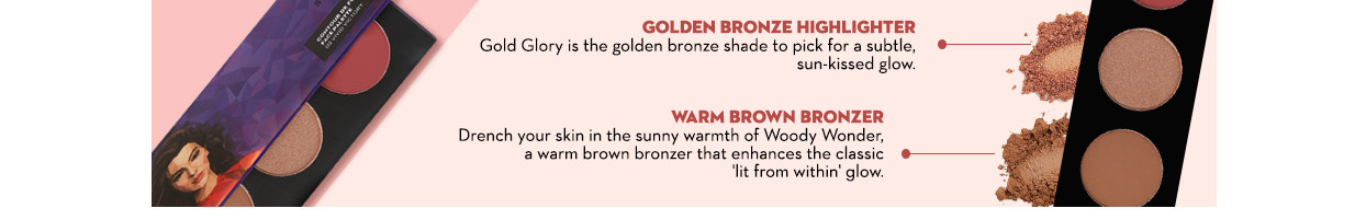 Bronzer: Talc, Mica, Dimethicone, Octyldodecyl Stearoyl Stearate, Isostearyl Neopentanoate, Zinc Stearate, Polybutene, Caprylyl Glycol, Phenoxyethanol, Hexylene Glycol, Isopropyl Isostearate, Tocopherol, Lecithin, Ascorbyl Palmitate, Glyceryl Stearate, Glyceryl Oleate, Citric Acid,